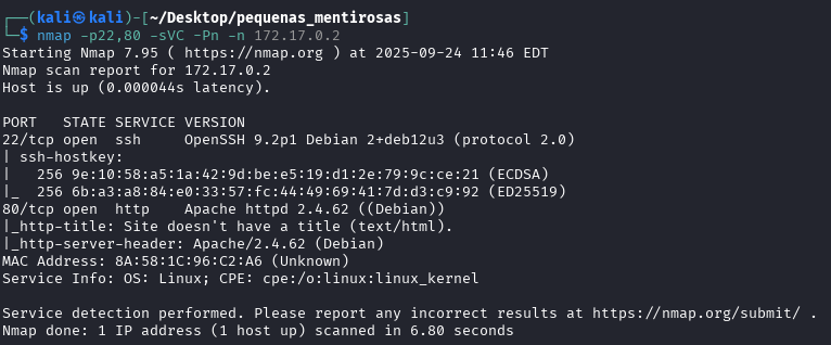 nmap -p22,80 -sVC -Pn -n 172.17.0.2