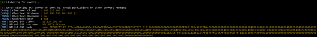 Después de unos instantes, recibimos el hash NTLMv2del usuario SECURITY-PC\sam.
