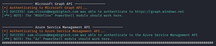 Invoke-MFASweep -Username sam.olsson@megabigtech.com -Password theD@RKni9ht -Recon