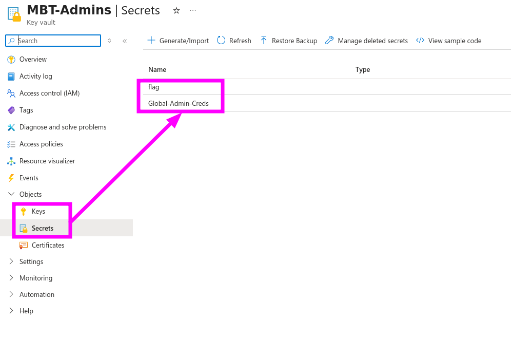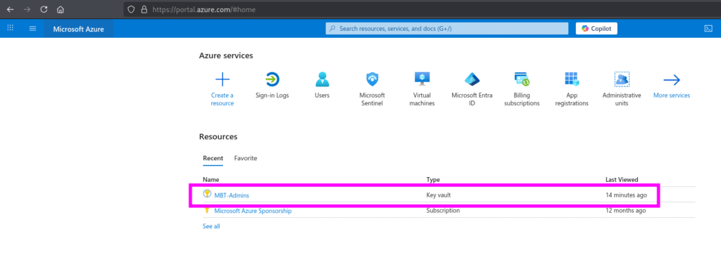 Al acceder al panel de Azure, encontramos un almacén de claves. Vamos a acceder para enumerarlo.